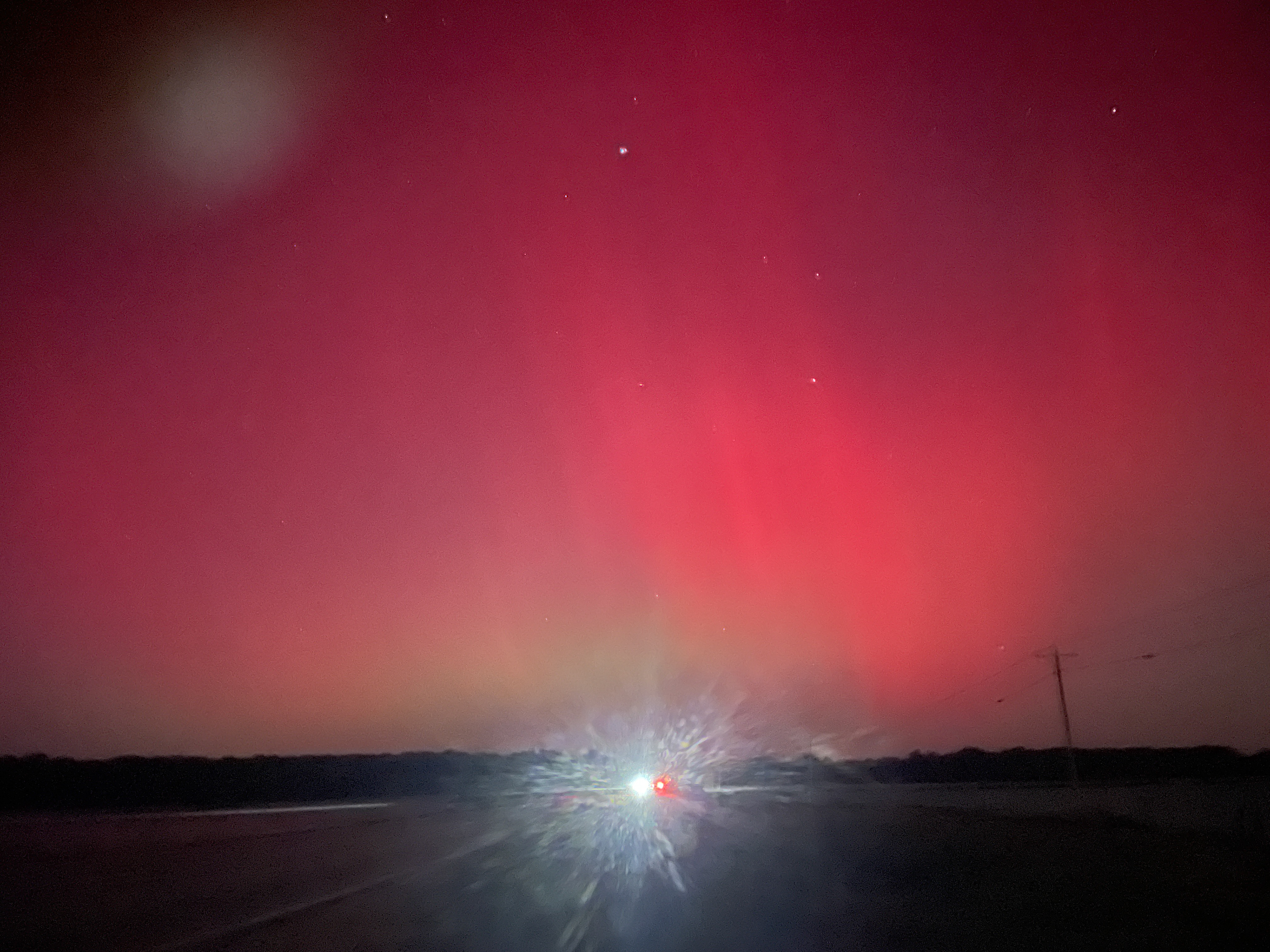 What people saw & why. Under clear skies, observers reported diffuse red and pink glows with occasional green colors produced by oxygen and nitrogen emissions excited by precipitating particles (e.g., green at 557.7 nm and red at 630.0 nm from atomic oxygen, and purples/violets from molecular nitrogen bands). Local outlets and photos documented the display from the Gulf Coast up through east Mississippi, and individual images captured the aurora specifically near Starkville, evidence that the oval reached well into Mississippi that night.
